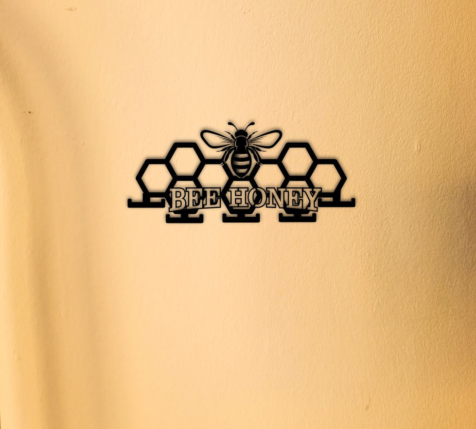 Celebrate nature’s most hardworking pollinator with this delightful bee honey metal wall hook. Featuring a bold bee above honeycomb shapes and the text “BEE HONEY,” this piece blends function and natural beauty in perfect harmony.