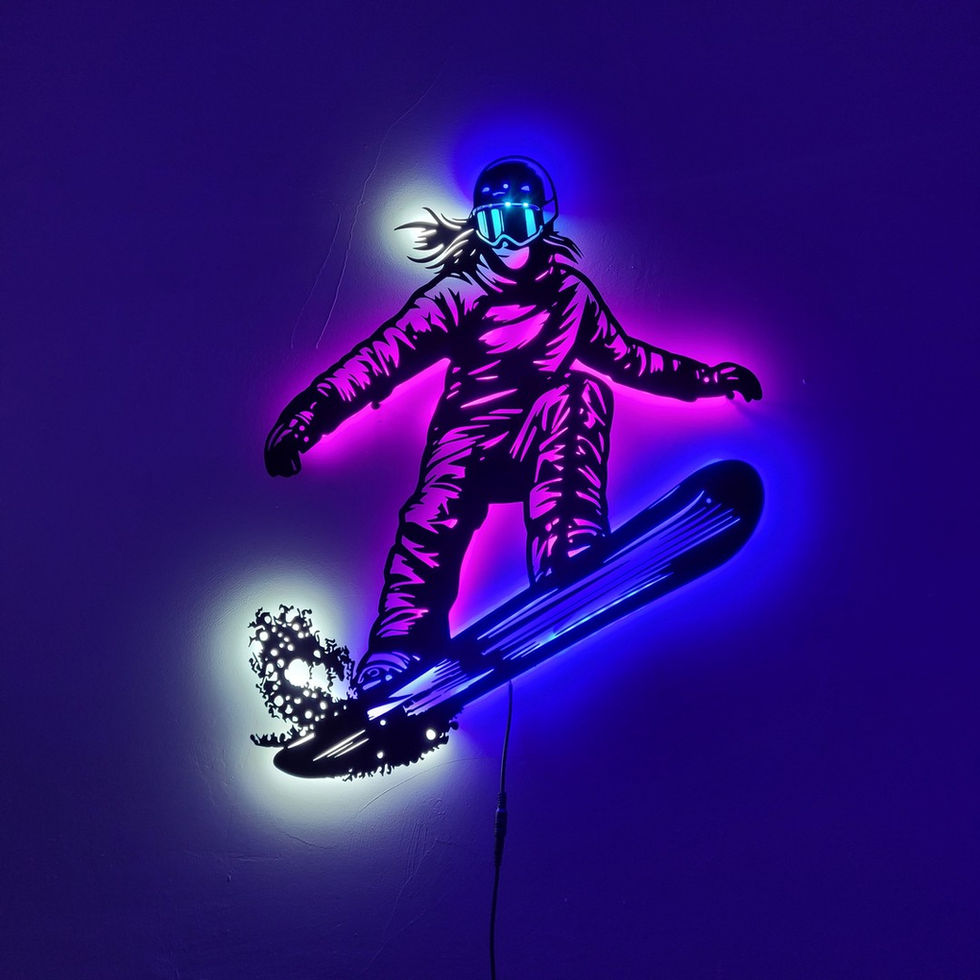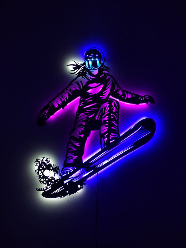 Metal LED Snowboard Skier Sign, Eye-Catching Home Decor for Ski and Snowboard Fa