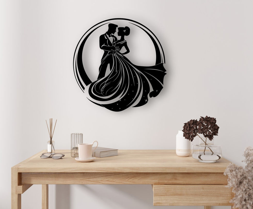 Vintage Dance Couple Metal Wall Art – Retro Style Silhouette for Home and Studio