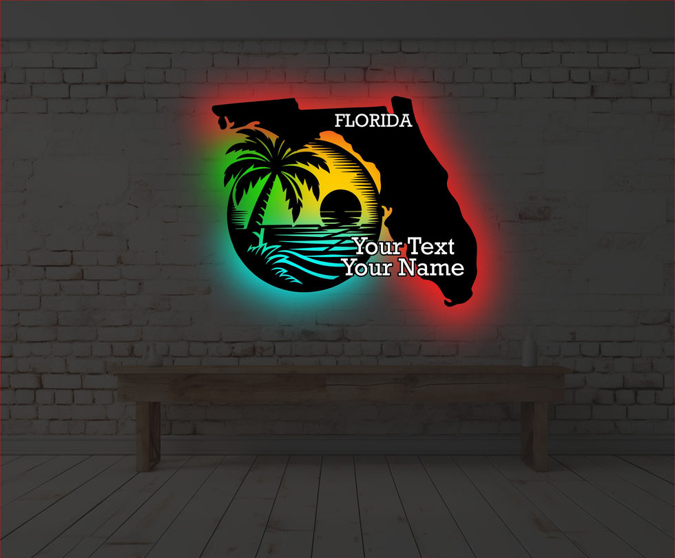 CNC-cut from 1.5mm steel and illuminated with color-changing RGB LED lights, this design is a unique blend of craftsmanship and coastal charm. Whether for a beach house, living room, or gift, it radiates warmth, personality, and Florida pride.