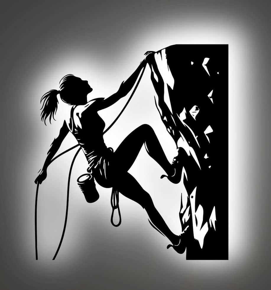 Mountaineer Wall Art, Unique metal climbing decor featuring LED lights