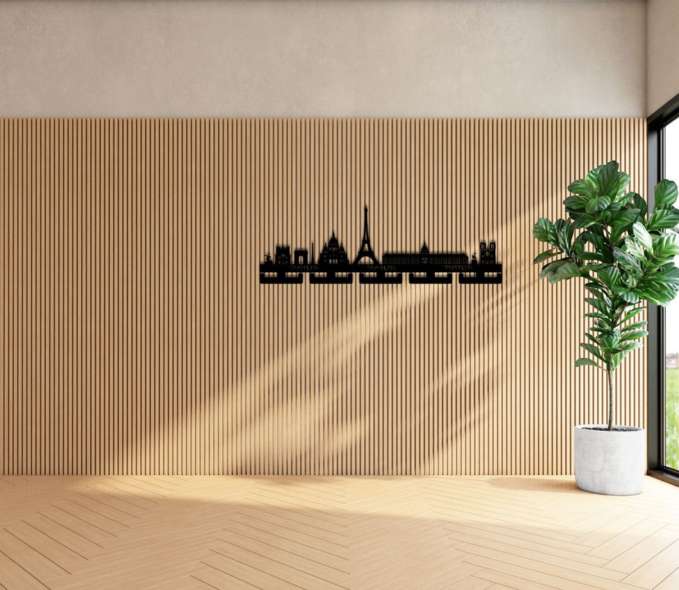 Bring a piece of Paris into your home with this stunning skyline metal hook rack. Crafted with precision, it features the Eiffel Tower, Notre-Dame Cathedral, and other beloved Paris landmarks in a sleek matte black silhouette. Designed for both form and function, this wall-mounted piece serves as a stylish key holder, coat hanger, or accessory organizer. Ideal for entryways, bedrooms, or offices.