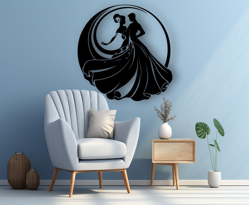 Romantic Dancing Couple Metal Wall Art – Elegant Silhouette for Living Room &